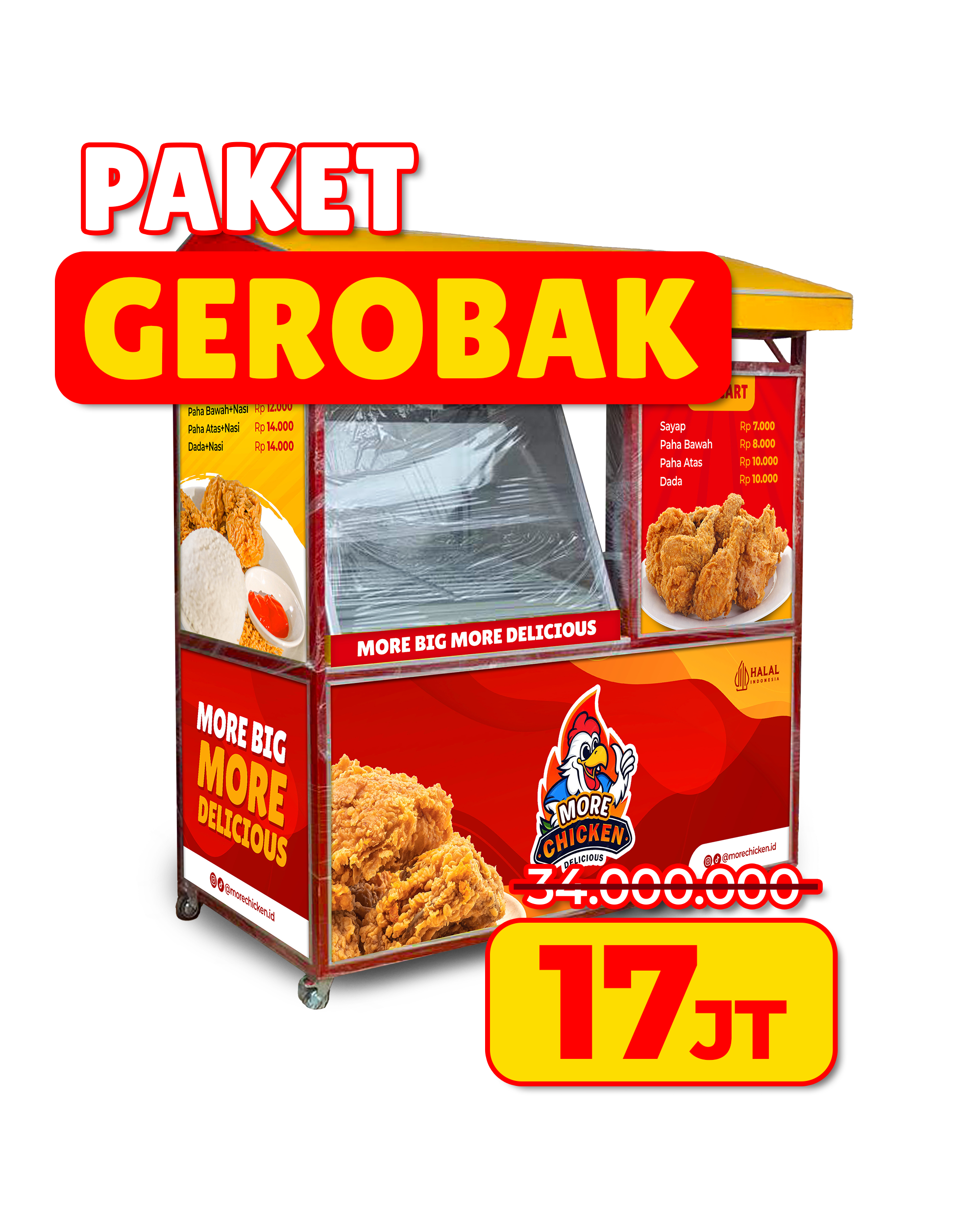 - MARKETING SUPPORT:Materi promosi, pendaftaran aplikasi layanan antar, hingga dibantu promosi dari tim Pusat More Chicken.